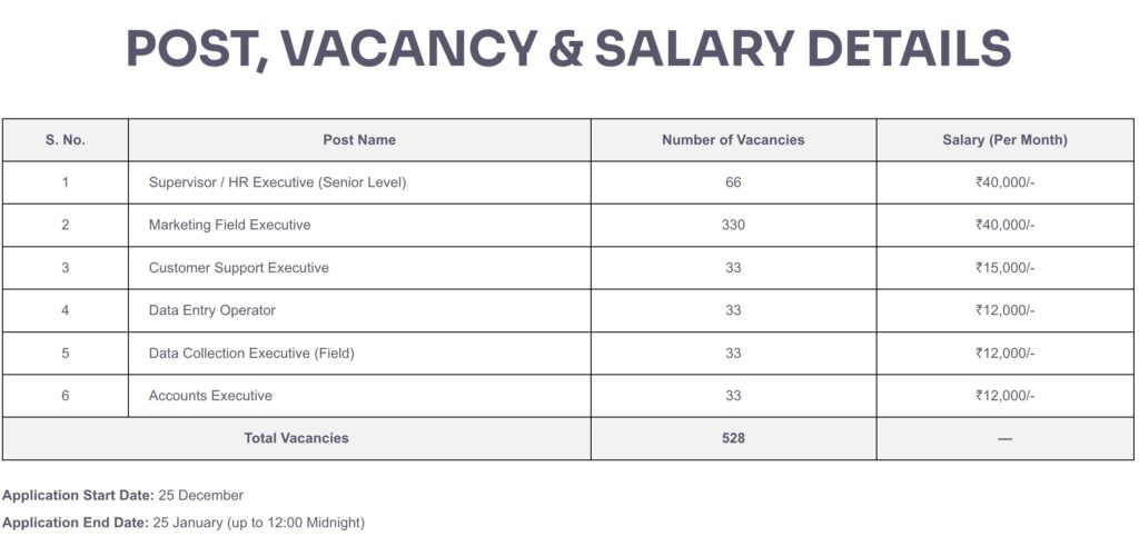 The Supervisor / HR Executive (Senior Level) will be responsible for supervision of staff, HR operations, recruitment processes, employee coordination, attendance management, and overall office administration.
